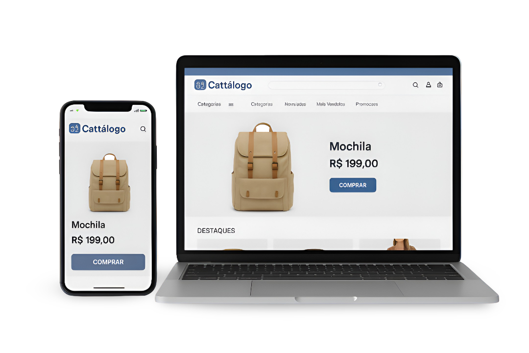 Seu catálogo funciona perfeitamente em celulares, tablets e computadores.
